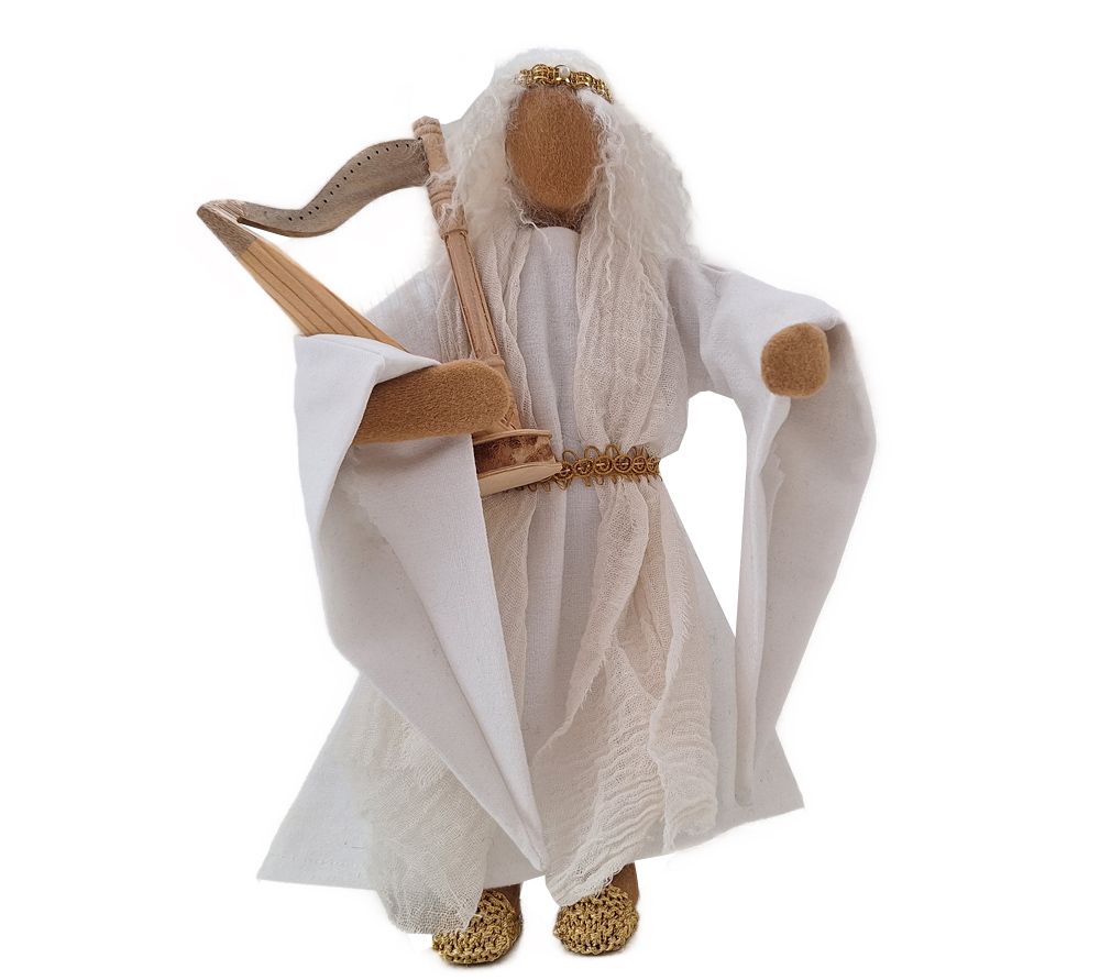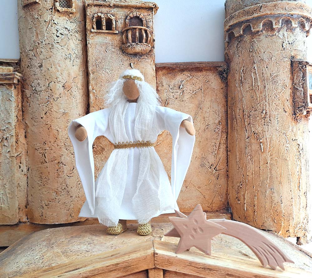 Erzengel Gabriel erstrahlt in Klarheit und Licht. Er ist anmutend in seinem schön genähten Kleid mit den langen Ärmeln und dem schönen Gürtel. Maria ist von ihm angetan, wenn er ihr die überraschende Botschaft verkündigt. Die Hirten auf dem Feld haben sofort Vertrauen in ihn und in jeder Weihnachtskrippe strahlt er Liebe und Zuversicht aus.Für den Engel gibt es verschiedene Musikinstrumente, die du gerne dazu bestellen kannst.