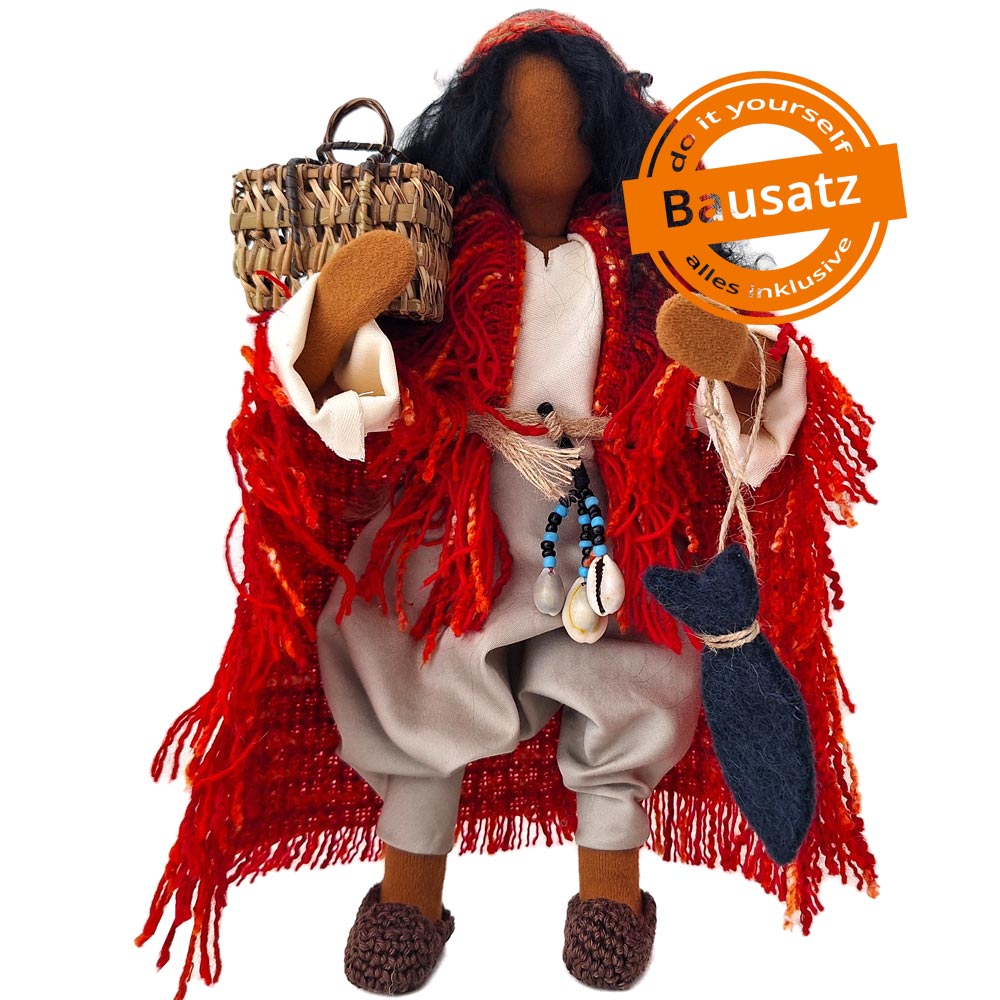 Du erhältst das Arbeitsmaterial, um Apostel Andreas herstellen zu können. Zum Set gehört auch die Kleidung und alles Zubehör, das du auf den Bildern siehst.