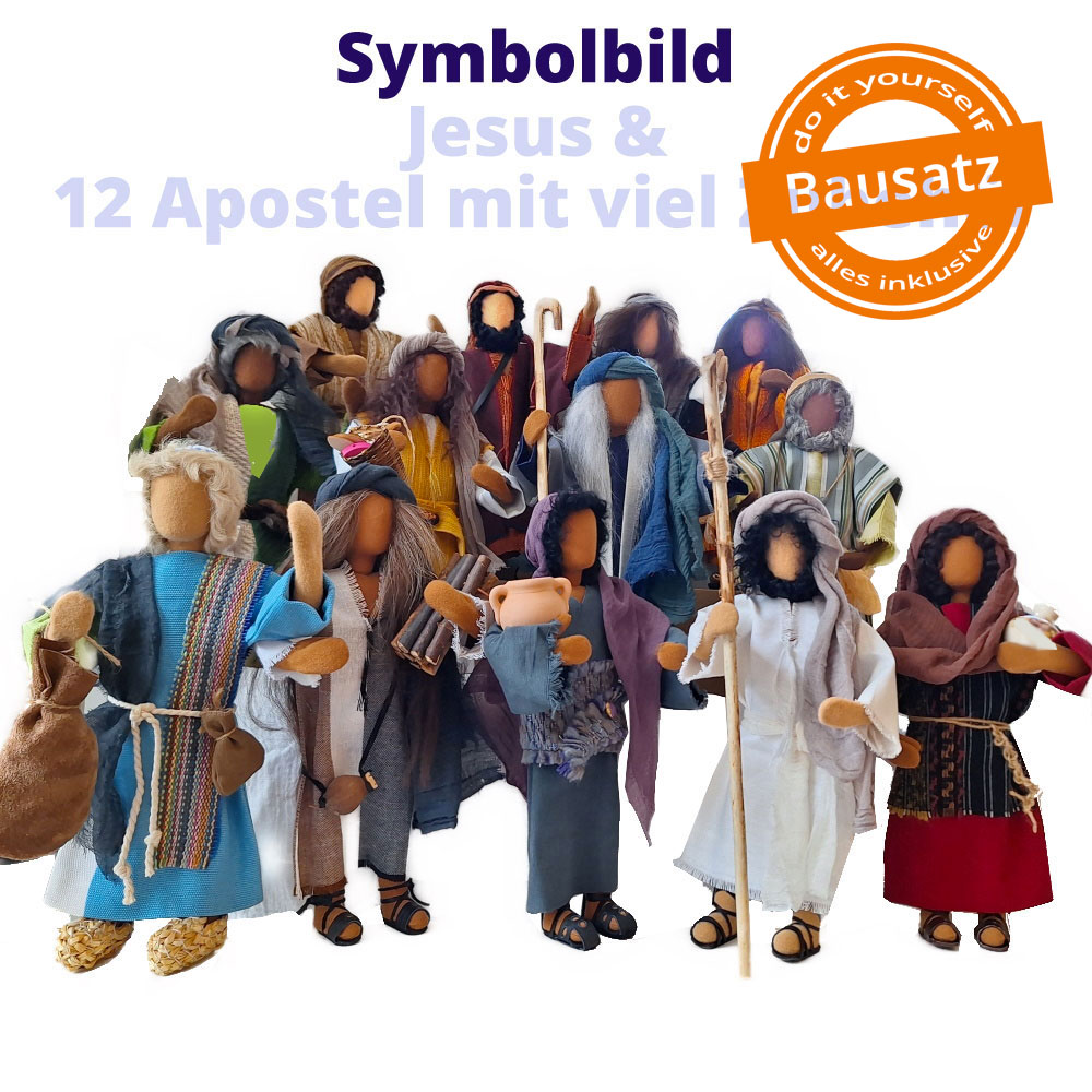 Wir helfen dir dabei, deine eigene harmonische Apostelgruppe in Eigenleistung herzustellen. Du erhältst das Arbeitsmaterial sowie Kleidung und Schuhe für ALLE 13 Figuren