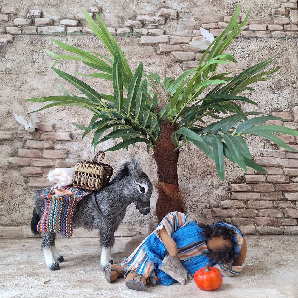 Mit 12 Jahren suchte Maria lange nach ihrem Sohn und fand ihn schließlich in intensiven Gesprächen mit den Rabbinern im Tempel. Die Kinderfigur Jesus ist 20cm hoch und kann auch für andere Szenen mit Kindern jederzeit verwendet werden.