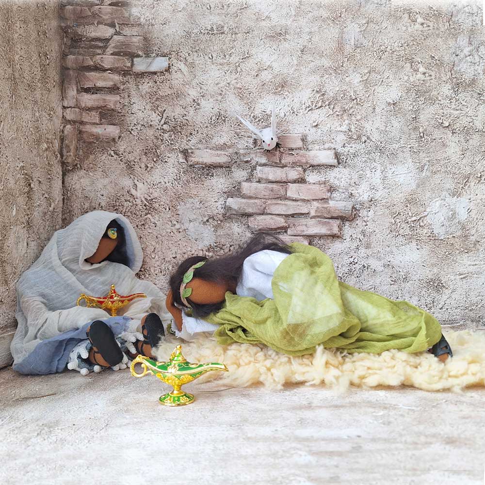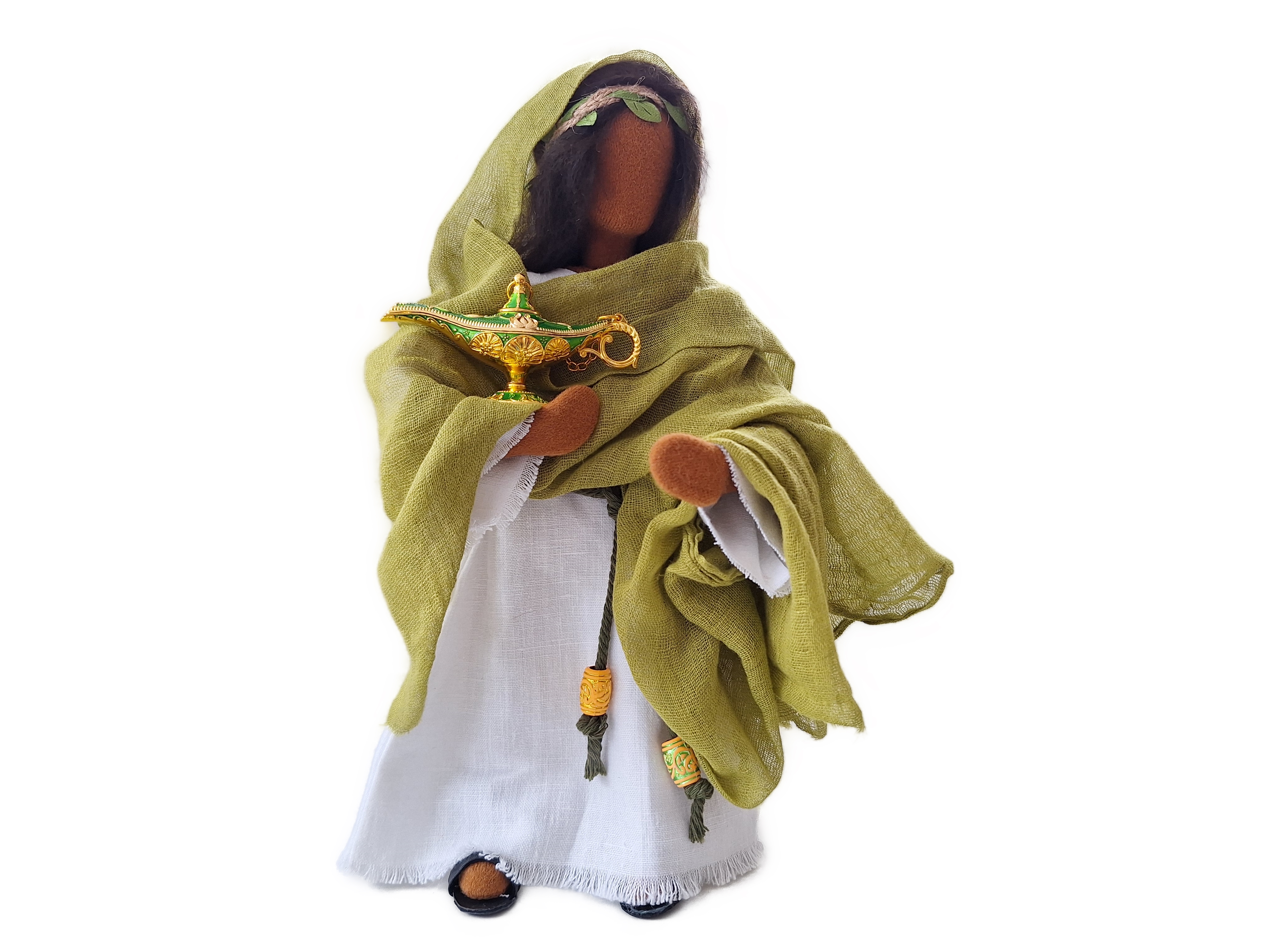 Du erhältst das Arbeitsmaterial sowie Kleidung und Schuhe, um die Jungfrau herstellen zu können. Wenn die Jungfrau klug ist und genügend Öl bei sich trägt, dann ist sie immer bereit, wenn der Herr kommt. Ob die Öllampe genügend Öl enthält ist ein Geheimnis, das jeder Betrachter für sich entschlüsseln kann.