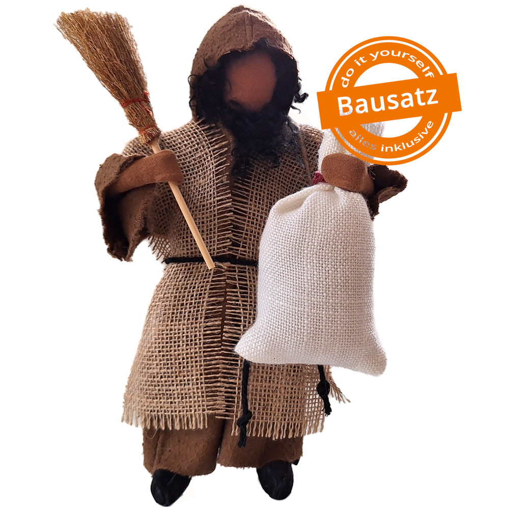 Du erhältst das Arbeitsmaterial sowie die Kleidung und die Schuhe, um Knecht Ruprecht, den freundlichen Helfer des Heiligen Nikolaus' herstellen zu können. Der starke Mann trägt in der Buckelkraxe auf seinem Rücken einen großen Sack, in dem er die vielen Gaben trägt, die er den Kindern bringt. Auch eine Rute hat er dabei, aber nur zum Saubermachen. Schau, wie die Kinder sich glücklich um ihn scharen!