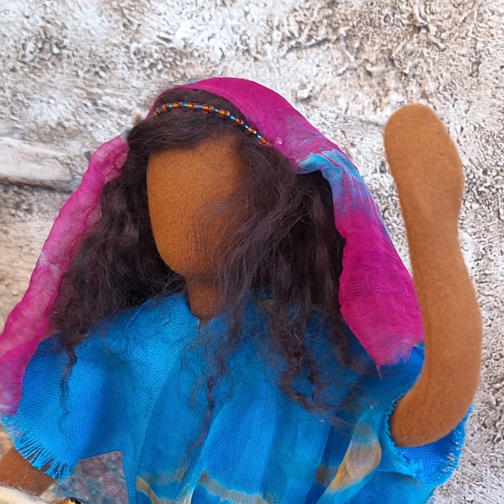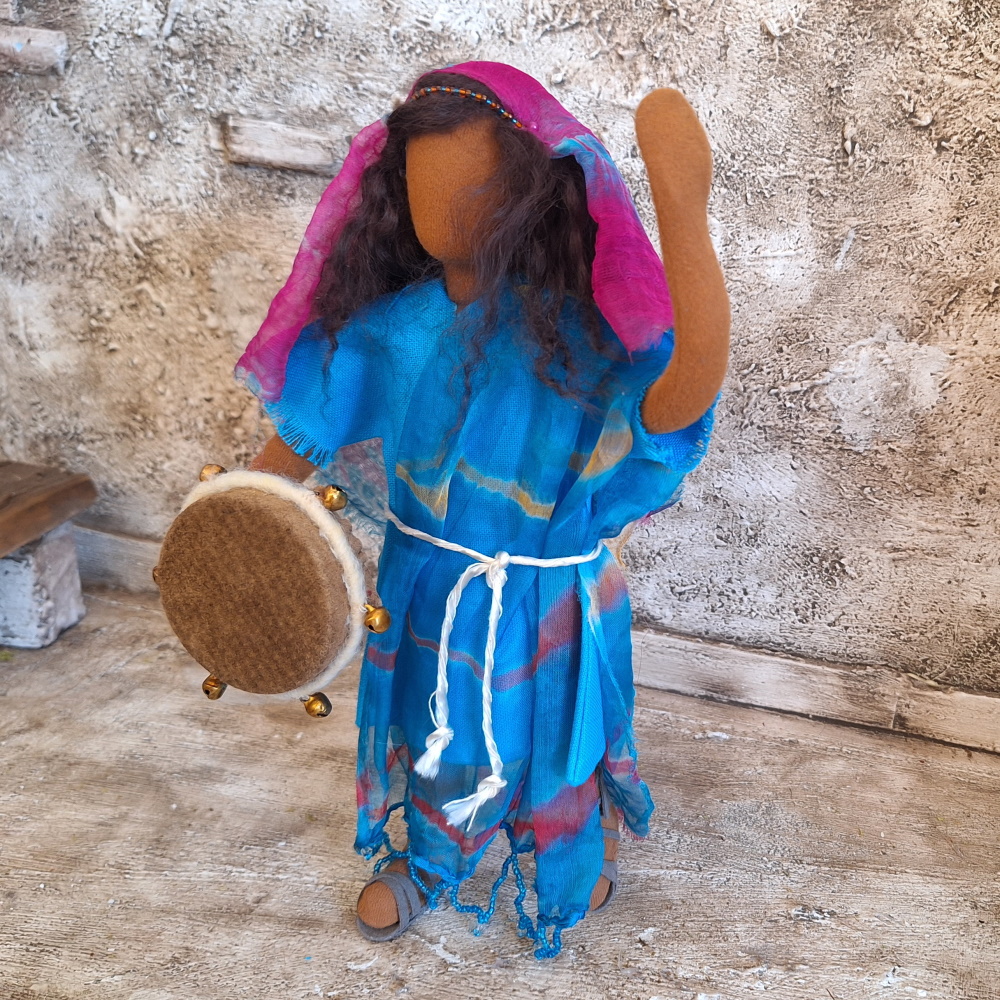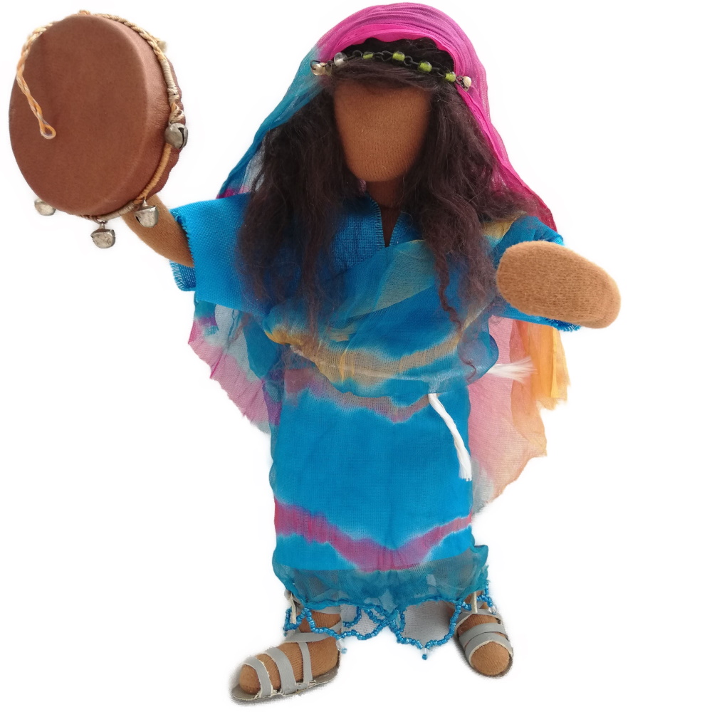 Du erhältst das Arbeitsmaterial, um die Figur Miriam in ihrer schönen farbenfrohen Kleidung herzustellen. Die Sandalen gehören auch zum Bausatz. Das Tamburin kannst du gerne mitbestellen.