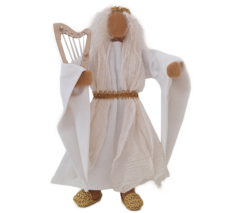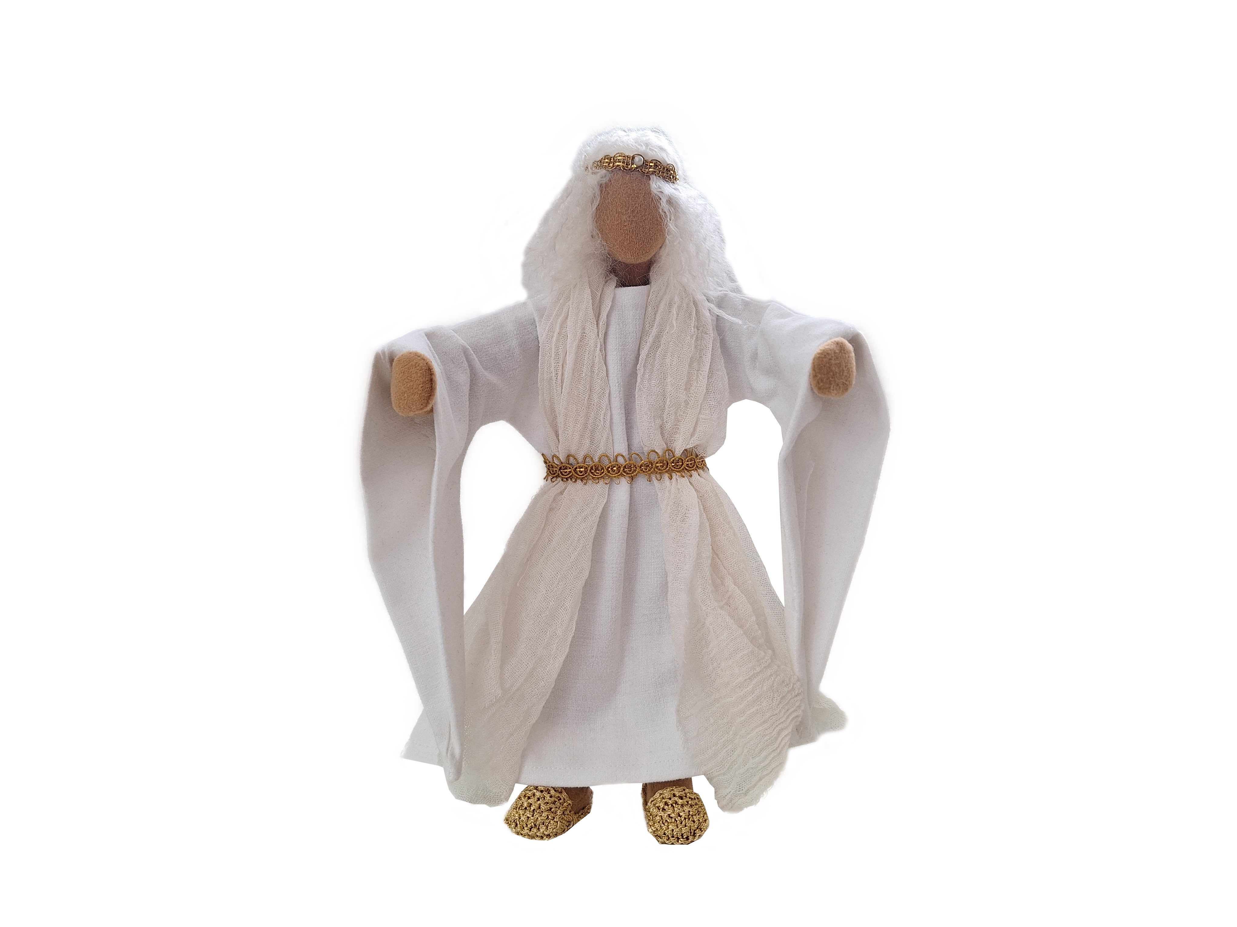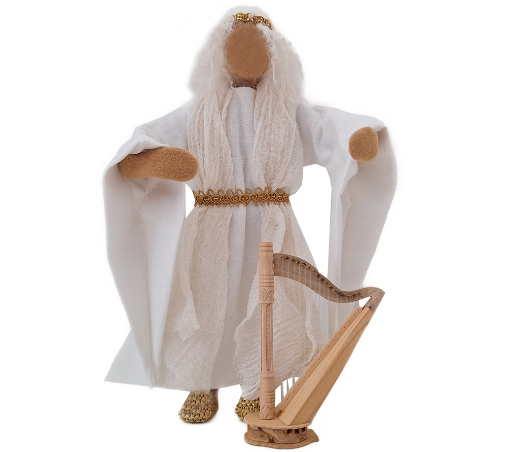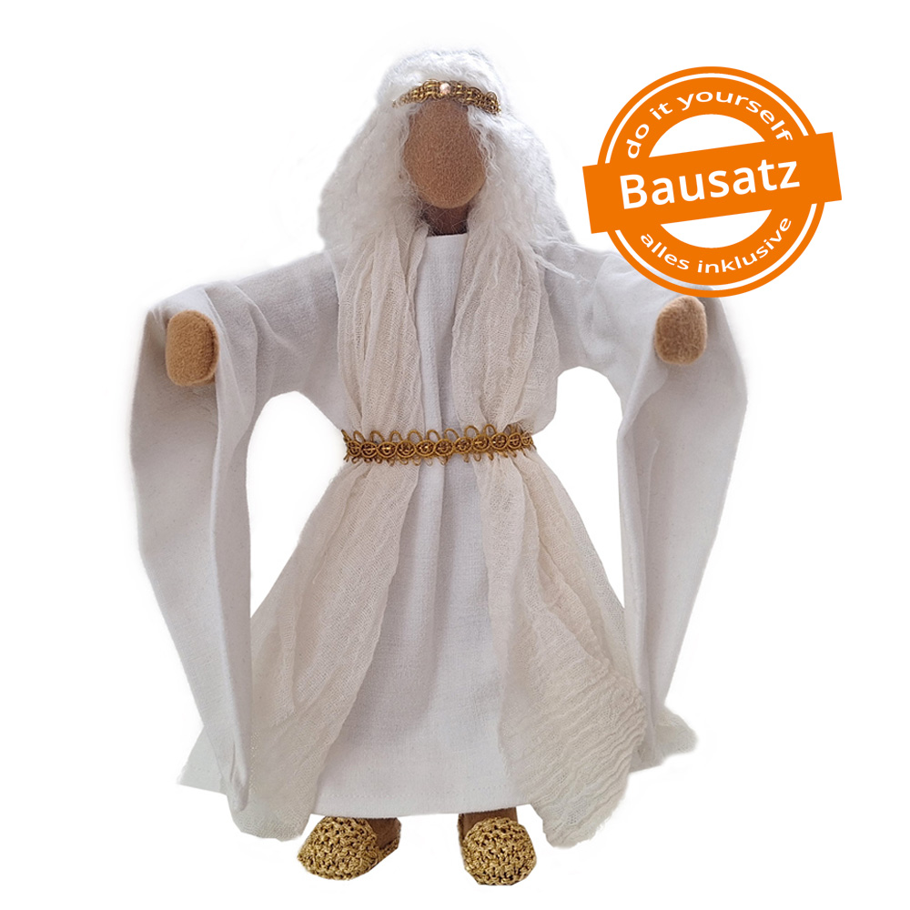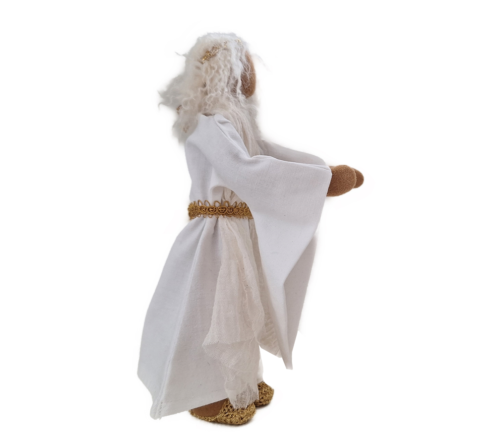Erzengel Gabriel erstrahlt in Klarheit und Licht. Er ist anmutend in seinem schön genähten Kleid mit den langen Ärmeln und dem schönen Gürtel. Maria ist von ihm angetan, wenn er ihr die überraschende Botschaft verkündigt. Die Hirten auf dem Feld haben sofort Vertrauen in ihn und in jeder Weihnachtskrippe strahlt er Liebe und Zuversicht aus.Für den Engel gibt es verschiedene Musikinstrumente, die du gerne dazu bestellen kannst.