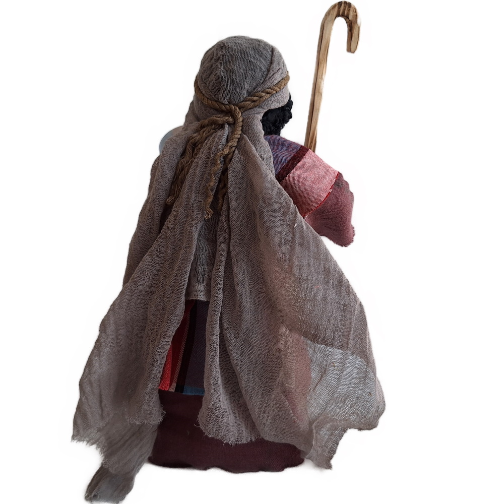 Du erhältst das Arbeitsmaterial, um in Eigenleistung den Hirten herzustellen. Durch die neutrale Kleidung, die ebenso mitgeliefert wird wie Sandalen und Decke, eignet sich diese Figur auch gut als neutraler Mann oder Apostel.