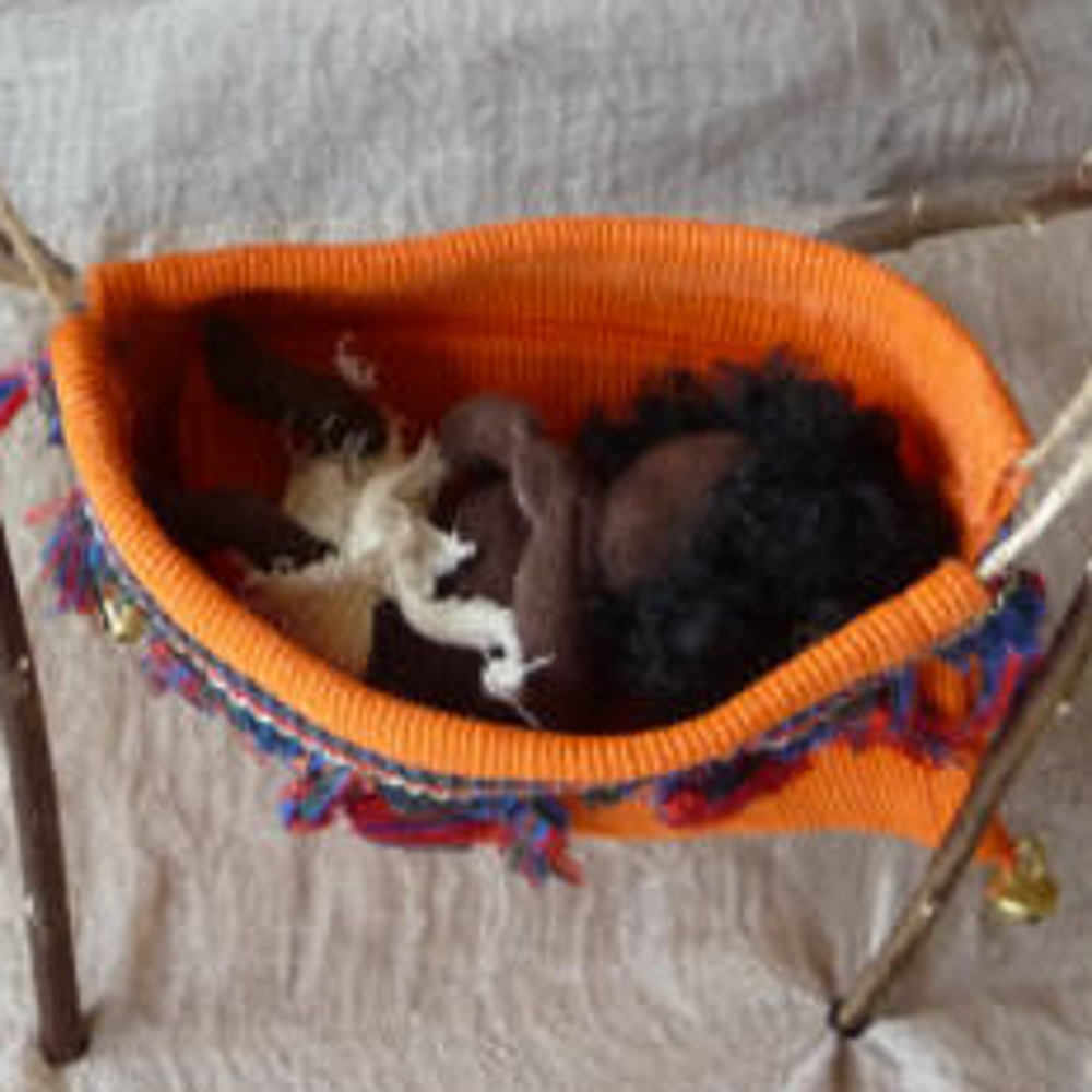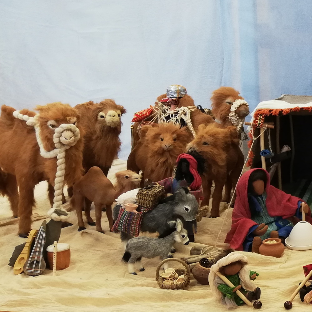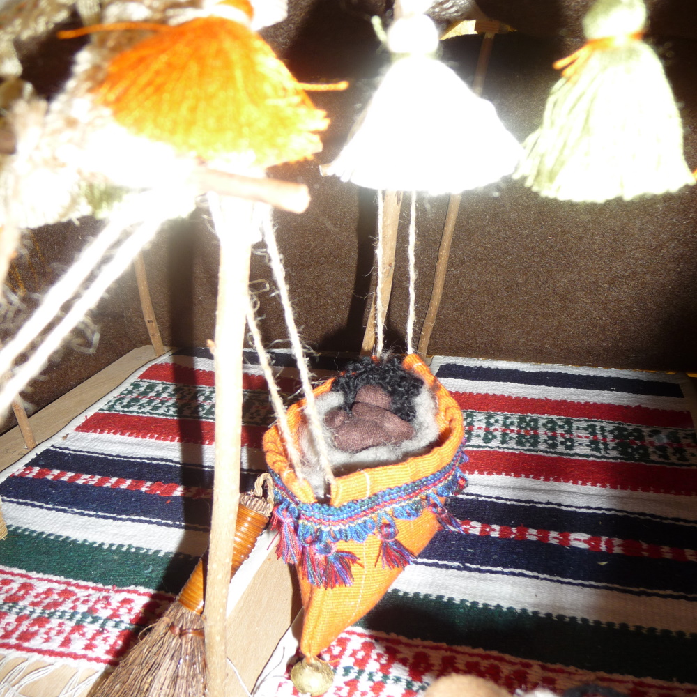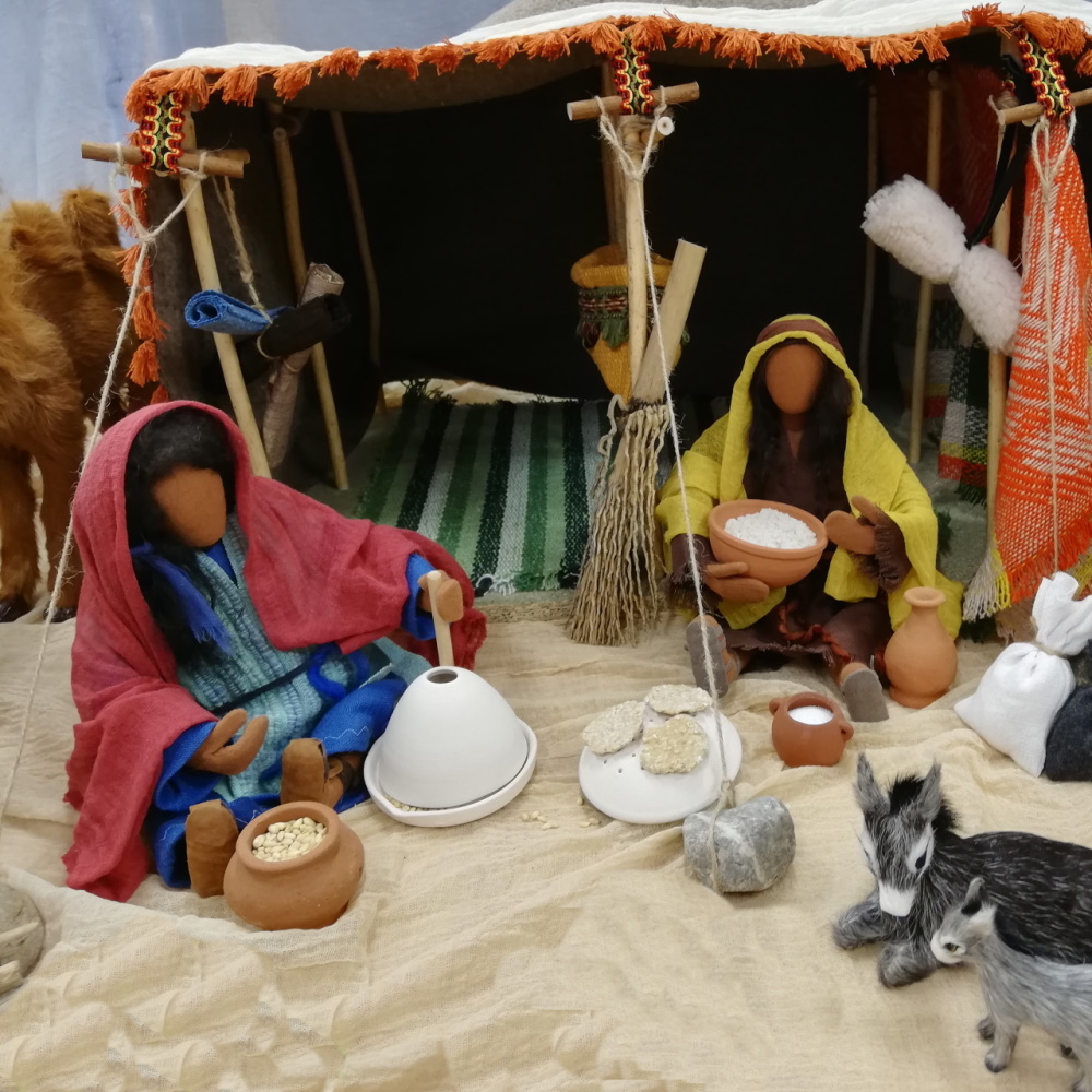In aufwändiger Detailverliebtheit stellen wir Abrahams Nomadenzelt in unserem Atelier her. Es ist der Miniaturnachbau eines originalen Wüstenzeltes, genau abgestimmt auf 30 cm Erzählfiguren. Es ist einfach wunderschön und fasziniert Kinder wie Erwachsene gleichermaßen.