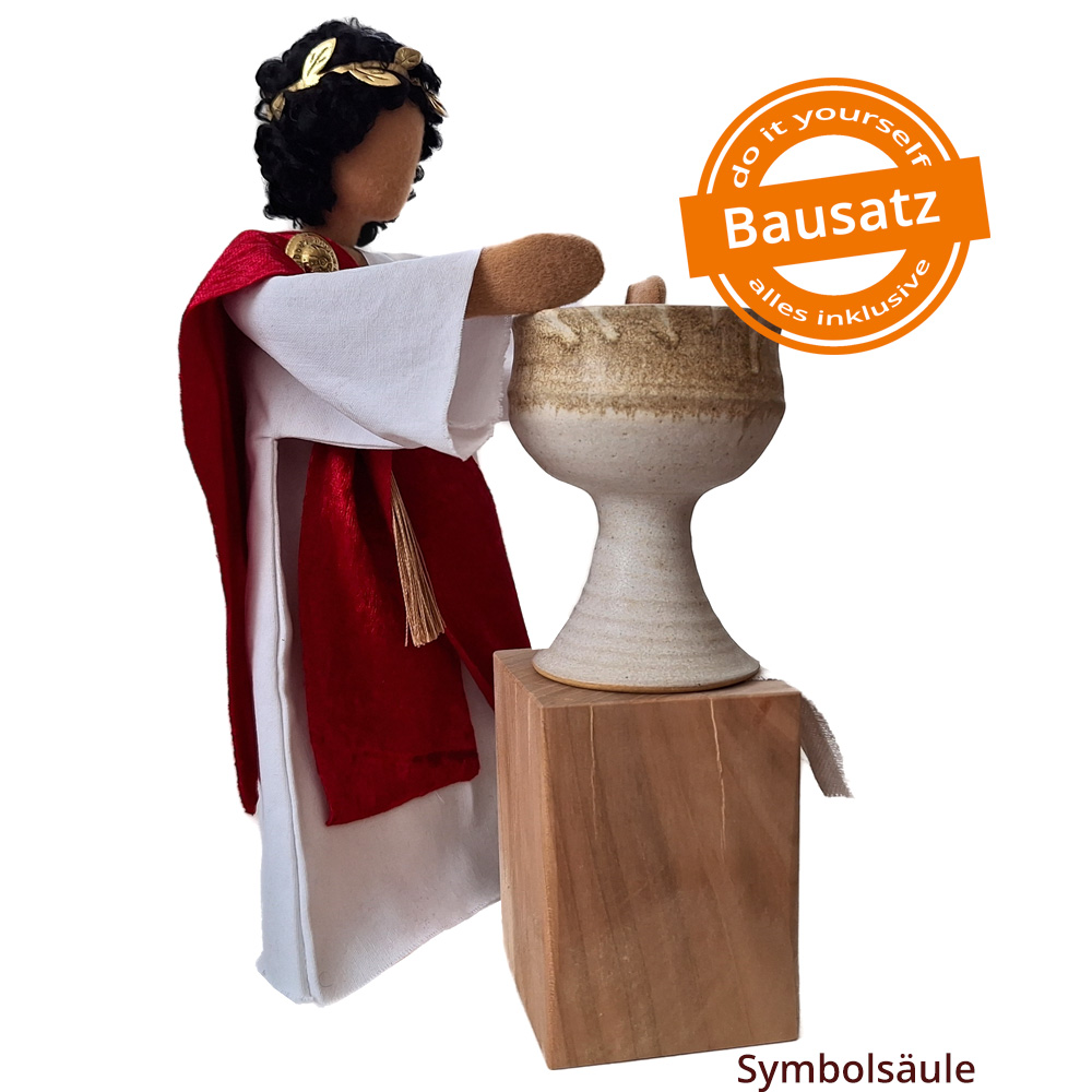 Du erhältst das Arbeitsmaterial, die Kleidung mitsamt Schmuck und Schuhen, um den Stadthalter Pilatus in Eigenleistung herstellen zu können. Wenn du eines unserer schönen Sets zur Handwaschung haben möchtest, bestelle es gerne dazu. Jedes Set ist ein Einzelstück, die Bilder nur Symbolbilder. Lass dich überraschen, welches unserer Sets zu dir finden will.