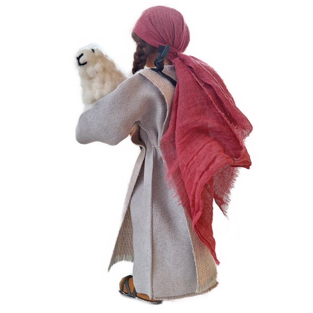 Deborah ist wie Lydia eine der ganz, ganz wenigen Frauen, die zur Zeit Jesu ein wichtiges Amt inne hatten und die Möglichkeit, über die Geschicke ihres Volkes mitzubestimmen. Sie war darüber hinaus auch Prophetin und sicherlich hat sie Wichtiges und Gutes in ihrem Leben bewirkt.Als Zeichen Ihrer Würde hält sie einen besonderen Stab aus Holz - in verschiedenen Ausführungen und sehr schön gefertigt - in der Hand.Auch trägt sie ein sehr besonderes Schmuckstück um den Hals. Es handelt sich um einen handgefertigten Anhänger mit Schmuckstein aus Pakistan. Jeder ist ein Unikat und hat eine andere Form und Farbe. Dieser Schmuckanhänger ist ein Sozialprojekt: Ich habe mit einem pakistanischen Freund ein kleines Hilfsprojekt gestartet. Er gibt jeder Frau, die ihm ein solches altes Schmuckstück bringt 7 Euro, was für dortige Verhältnisse krass überbezahlt ist. So helfen wir den Frauen, ohne ihnen ein Gefühl von Almosenverteilung zu geben, und dafür kannst du und ich Freude empfinden an der Authentizität eines jeden Anhängers.